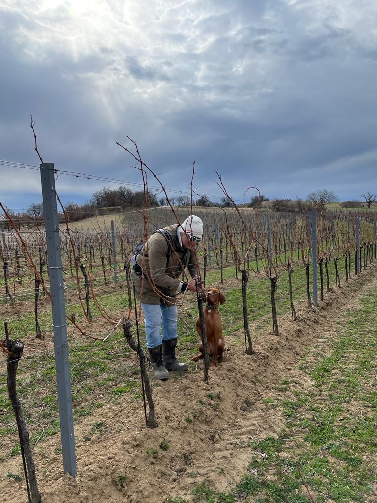 Today’s most important task is pruning in our vineyards. The first cut I always do myself — it’s the most important one, because it sets the tone for the whole season and the quality to come.