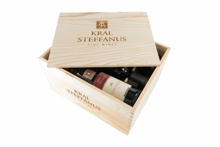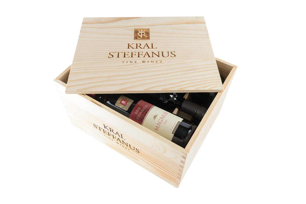 Beautiful wooden box for Kral Steffanus wines. High-quality wood and handcrafted work give this packaging exclusivity. Limited edition.
