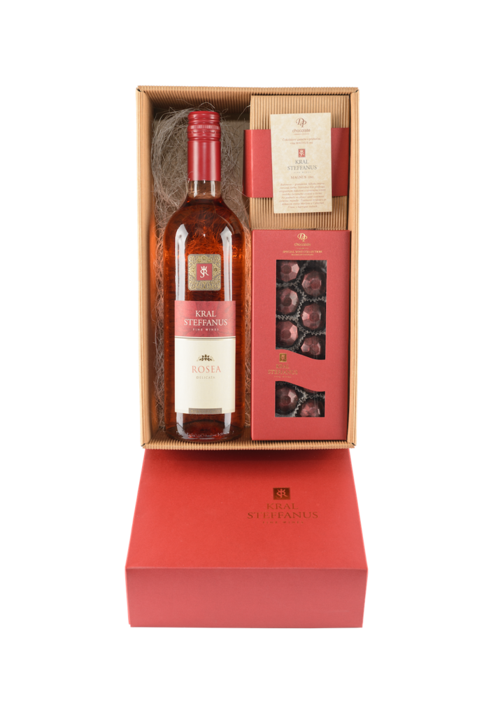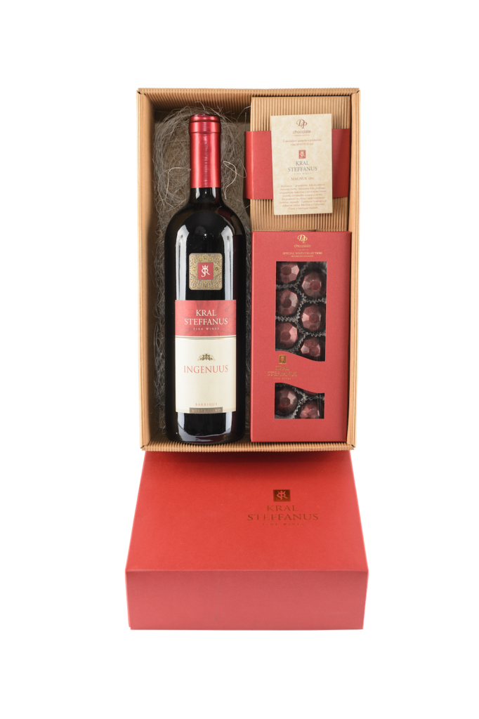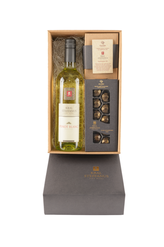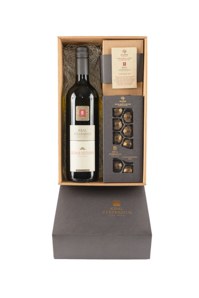 Darčekové balenie je limitovaná edícia, ktorá bola vytvorená iba pre značku Kral Steffanus a originálne pralinky pre tento set sa vyvíjali niekoľko rokov, aby sa doladilo to najlepšie snúbenie vína a čokolády.