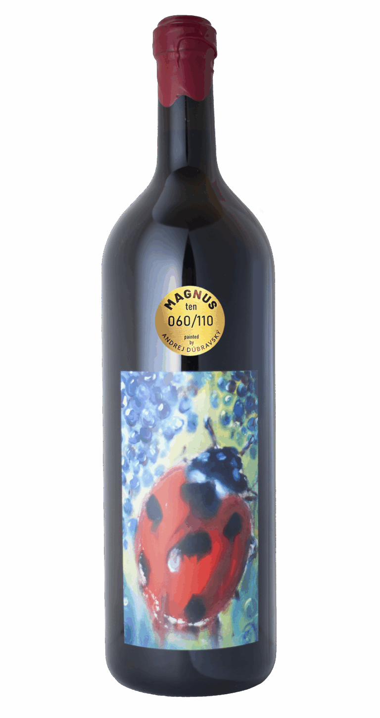 Jedinečná edícia vín MAGNUS Ten Grande Reserve 1,5,3 a 5L , pre ktoré etiketu navrhol a namaľoval mladý slovenský maliar Andrej Dúbravský. Spojenie dokonalej chuti Merlotu ktorý dozrieval 24. mesiacov v Barrique sudoch a Cabernet Franc spolu s umeleckým dielom vytvára harmóniu a balzam pre všetky zmysly. Odporúčané piť 2028 – 2040. Frank Smulders MW