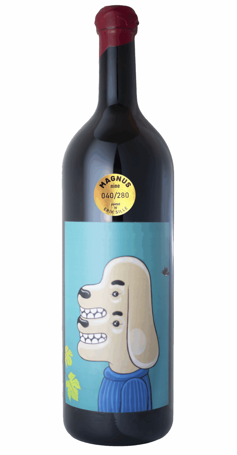 Jedinečná edícia vín MAGNUS Nine Grande Reserve 1,5,3 a 5L , pre ktoré etiketu navrhol a namaľoval uznávaný slovenský umelec Erik Šille. Spojenie dokonalej chuti Merlotu ktorý dozrieval 24. mesiacov v Barrique sudoch a umeleckého diela vytvára spolu harmóniu a balzam pre všetky zmysly. Odporúčané piť 2028 – 2040. Frank Smulders MW