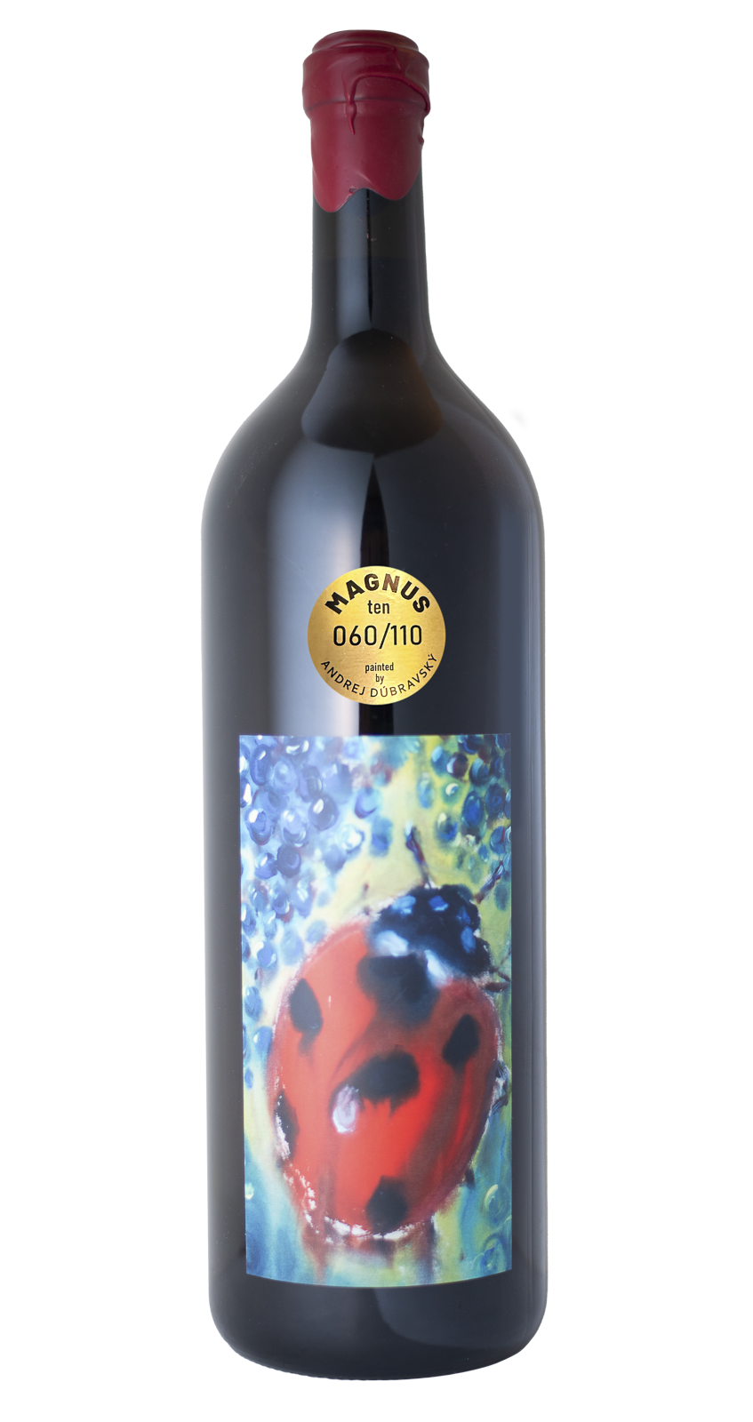 Jedinečná edícia vín MAGNUS Ten Grande Reserve 1,5,3 a 5L , pre ktoré etiketu navrhol a namaľoval mladý slovenský maliar Andrej Dúbravský. Spojenie dokonalej chuti Merlotu ktorý dozrieval 24. mesiacov v Barrique sudoch a Cabernet Franc spolu s umeleckým dielom vytvára harmóniu a balzam pre všetky zmysly. Odporúčané piť 2028 – 2040. Frank Smulders MW