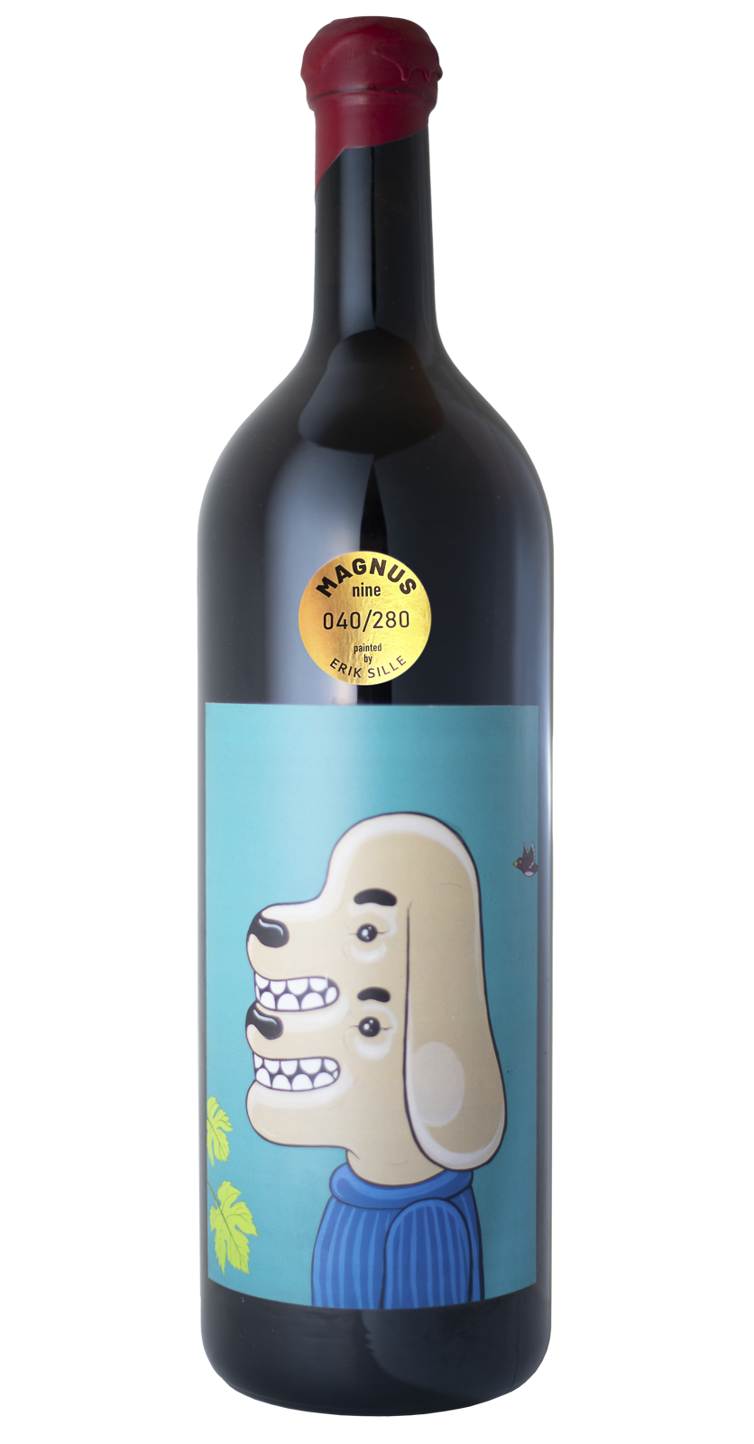 Jedinečná edícia vín MAGNUS Nine Grande Reserve 1,5,3 a 5L , pre ktoré etiketu navrhol a namaľoval uznávaný slovenský umelec Erik Šille. Spojenie dokonalej chuti Merlotu ktorý dozrieval 24. mesiacov v Barrique sudoch a umeleckého diela vytvára spolu harmóniu a balzam pre všetky zmysly. Odporúčané piť 2028 – 2040. Frank Smulders MW