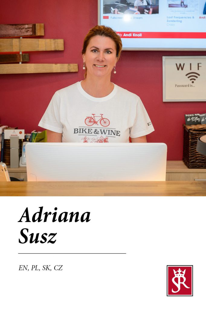 Adriana Král-Susz je manželka Pavla Krála a organizuje vinné ochutnávky v rodinnej rezidencii Kral Steffanus. Má na starosti poľský trh.