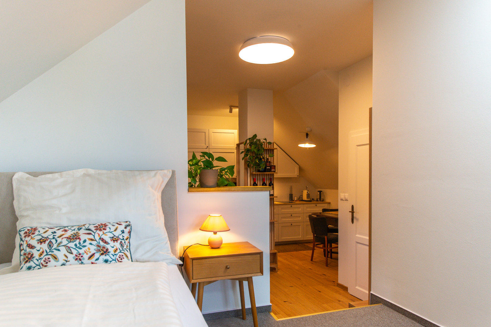 Tento apartmán má spálňu (1), kuchynku s chladničkou a mikrovlnnou rúrou, TV s plochou obrazovkou, priestor na posedenie a kúpeľňu (1) so sprchou. Súčasťou vybavenia sú uteráky a posteľná bielizeň.